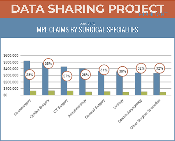 The MPL Association examines closed claim data on surgical specialties from the Data Sharing Project. Among the findings, surgical specialties represent 43% of all closed claims and nearly half (48%) of all paid claims. Take a deep dive into the data surrounding surgical specialty claims in this new DSP Highlight.