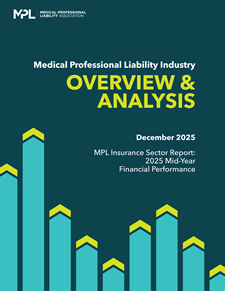 MPL Insurance Year-End Sector Report: 2024 Financial Results Analysis and 2025 Financial Outlook This is a featured report in the Overview & Analysis series: (1) MPL Insurance Sector Report—Year-End (June 2025) (2) Loss Reserves in MPL Insurance (3) MPL Insurance Sector Report—Mid-Year (December 2025) (4) Diversification in the Medical Professional Liability Industry (March 2025) This edition (June 2025) explores the industry's key financial metrics for 2024, most notably, financial performance (combined ratios), premium growth, accident-year loss ratios, and reserve changes in prior accident years. It also includes a look at several external factors that can have an impact on the MPL industry's performance. Price for the series—includes all four publications: Member – No charge Executive, Strategic, and Mission Partner – No charge Premium and Advantage Affiliate Partner and Affiliate Defense Law Firm (25% discount) – $895.00 Non-member/Public – $1,195.00